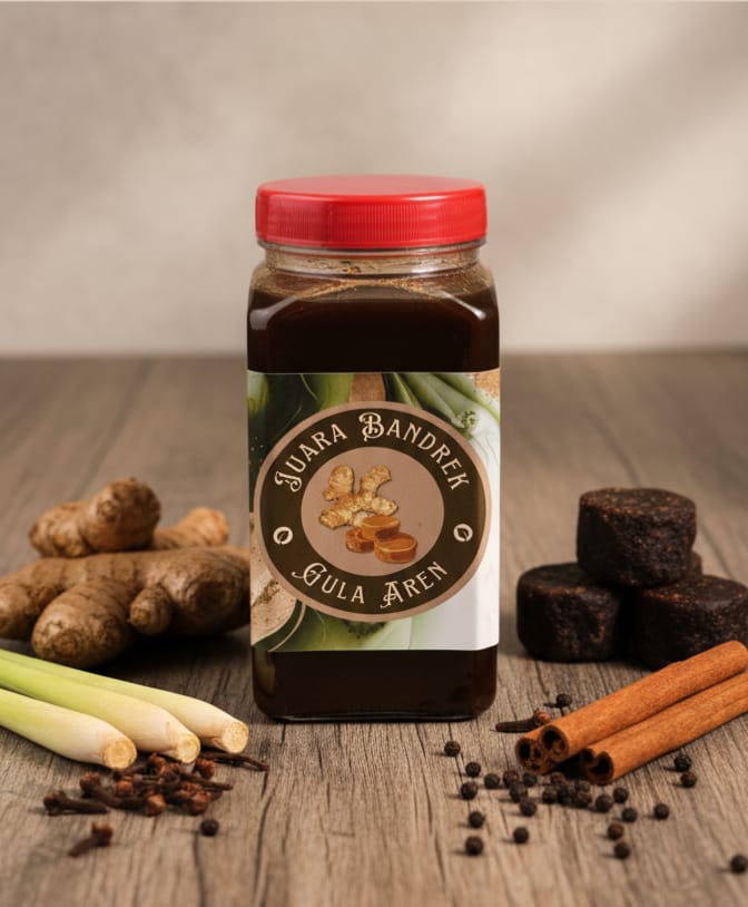 Juara Bandrek Gula Aren adalah minuman herbal siap saji berbahan dasar jahe dan rempah pilihan dengan manis alami gula aren. Praktis disajikan, cocok diminum hangat untuk menghangatkan badan, melegakan tenggorokan, dan membantu menjaga daya tahan tubuh sebagai imun booster alami.